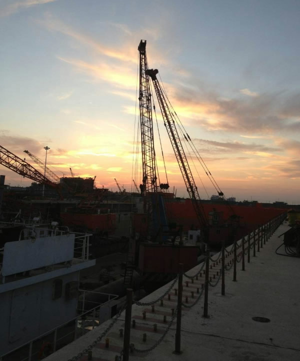 針對七月生產(chǎn)實際,公司及時發(fā)出修船生產(chǎn)安全要點:1/船東修理單和塢墩圖,2/船廠工程單,3/目標(biāo)周期,4/目標(biāo)收入和成本,5/油艙布置圖和存油記錄,6/上船梯和管線布置,7/修船防火布置和透氣管頭的包扎,8/動火申請單和監(jiān)火責(zé)任的落實,9/水下部分的涂裝工程專業(yè)管理,10/水下閥修理 和管系的專業(yè)管理,11/出塢入水前的防傾覆專業(yè)管理,12/出塢后的系泊方案及其安全實施。