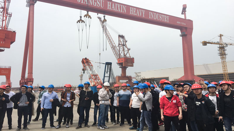 4月24日江蘇科技大學(xué)船海學(xué)院19屆學(xué)生66人在黃彪、殷齊麟老師的帶領(lǐng)下,參觀了我公司海新船廠和通海港碼頭工地。海新項(xiàng)目經(jīng)理殷飛飛帶領(lǐng)學(xué)生按船廠生產(chǎn)的工藝流程,參觀了整個船廠,并做了詳細(xì)的講解,同學(xué)們對船廠總布置有了直觀的了解。通海港項(xiàng)目經(jīng)理傅曉健在現(xiàn)場就高樁碼頭為學(xué)生做了生動詳盡的介紹,學(xué)生踴躍提問,積極互動,是一次非常成功的崗前實(shí)踐。