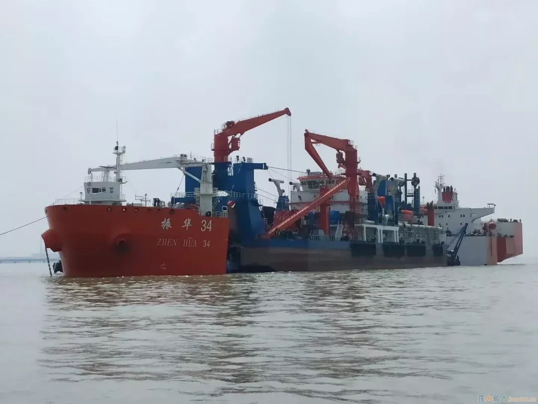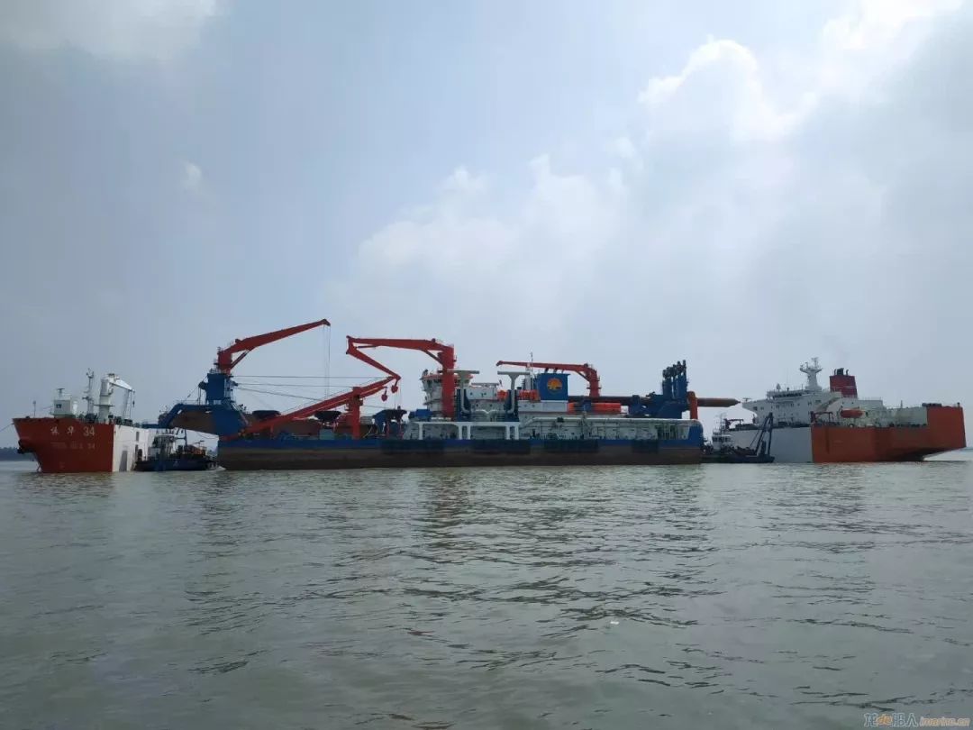 由江蘇海宏建設(shè)工程有限公司投資,江蘇海新重工建造的全球領(lǐng)先的非自航絞吸式挖泥船“新海騰”,在南通狼山錨地由“振華34”半潛裝載,奔赴孟加拉參與“一帶一路”沿線國家的碼頭和港口建設(shè)。