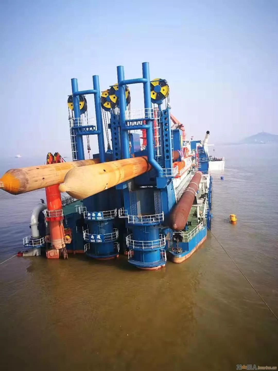 The world’s leading non-self-propelled cutter suction dredger “New Haiteng”, invested by Jiangsu Haihong Construction Engineering Co., Ltd and built by Jiangsu Haixin Shipping Heavy Industries Co., Ltd, sailed for Bangladesh for participating the Construction of docks and ports in countries along the Belt and Road after submerged loaded on “Zhenghua 34” from Nantong Langshan anchorage.