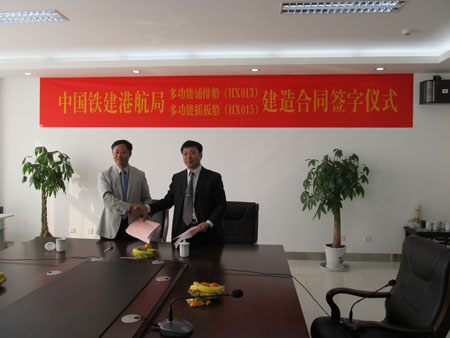 11月26日上午,江蘇海新船務(wù)重工有限公司為中國(guó)鐵建港航局承建的多功能鋪排船(HX013)和多功能插板船(HX015)合同簽字儀式,在海新重工辦公大樓七樓會(huì)議室舉行。...