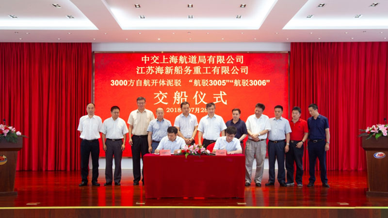 2018年7月28日,由江蘇海新船務重工有限公司承建兩條3000方級自航開體泥駁船(航駁3005,航駁3006)整裝待發(fā)。...