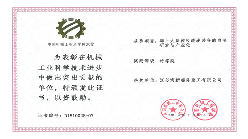 2018年10月25日,熱烈慶祝海新重工榮獲中國機械工業(yè)科學技術(shù)特等獎。...
